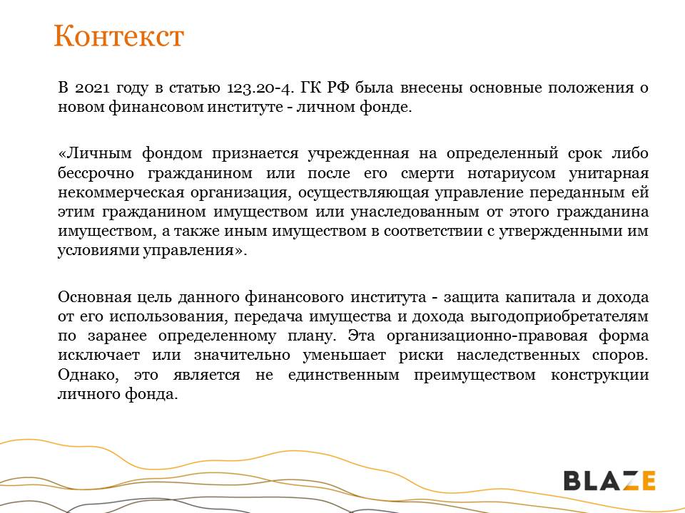 Компания Blaze Consulting представляет исследование "Личные фонды. Новый инструмент управления благосостоянием".